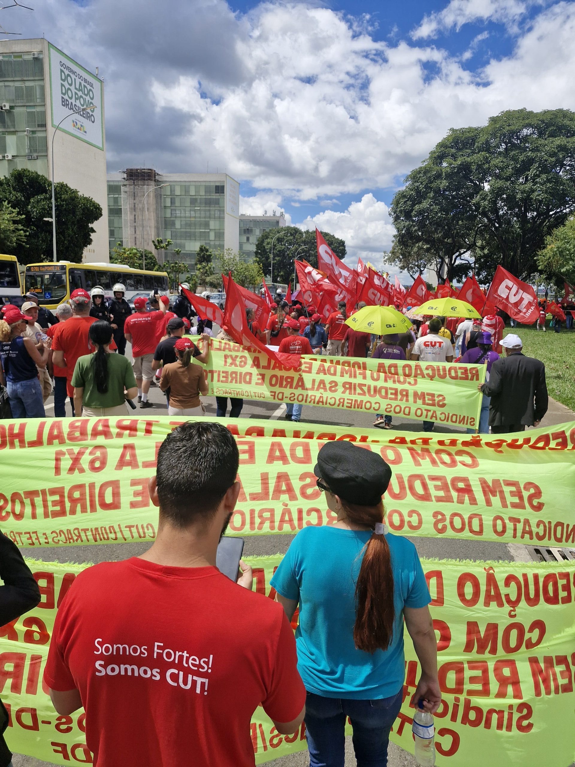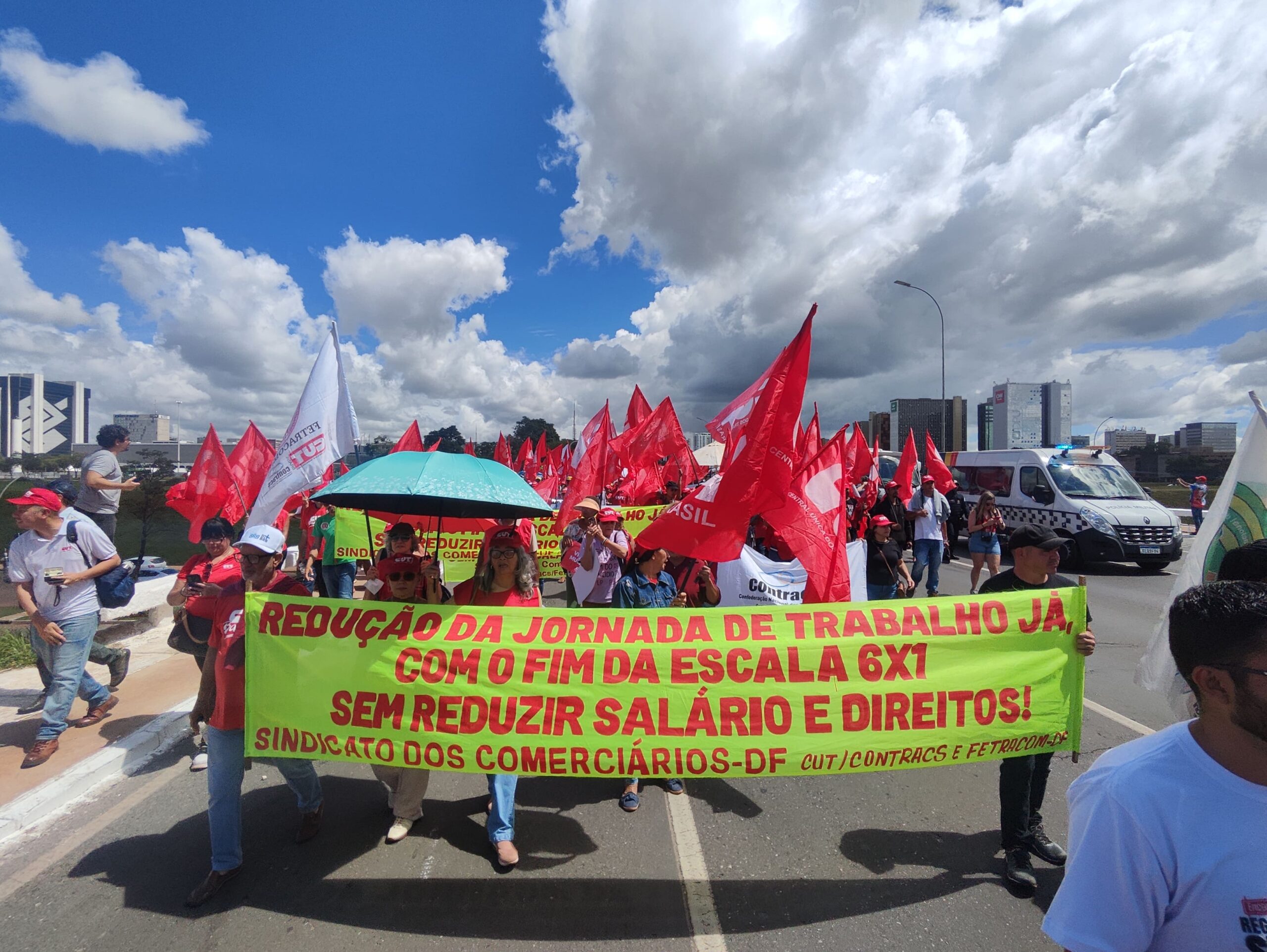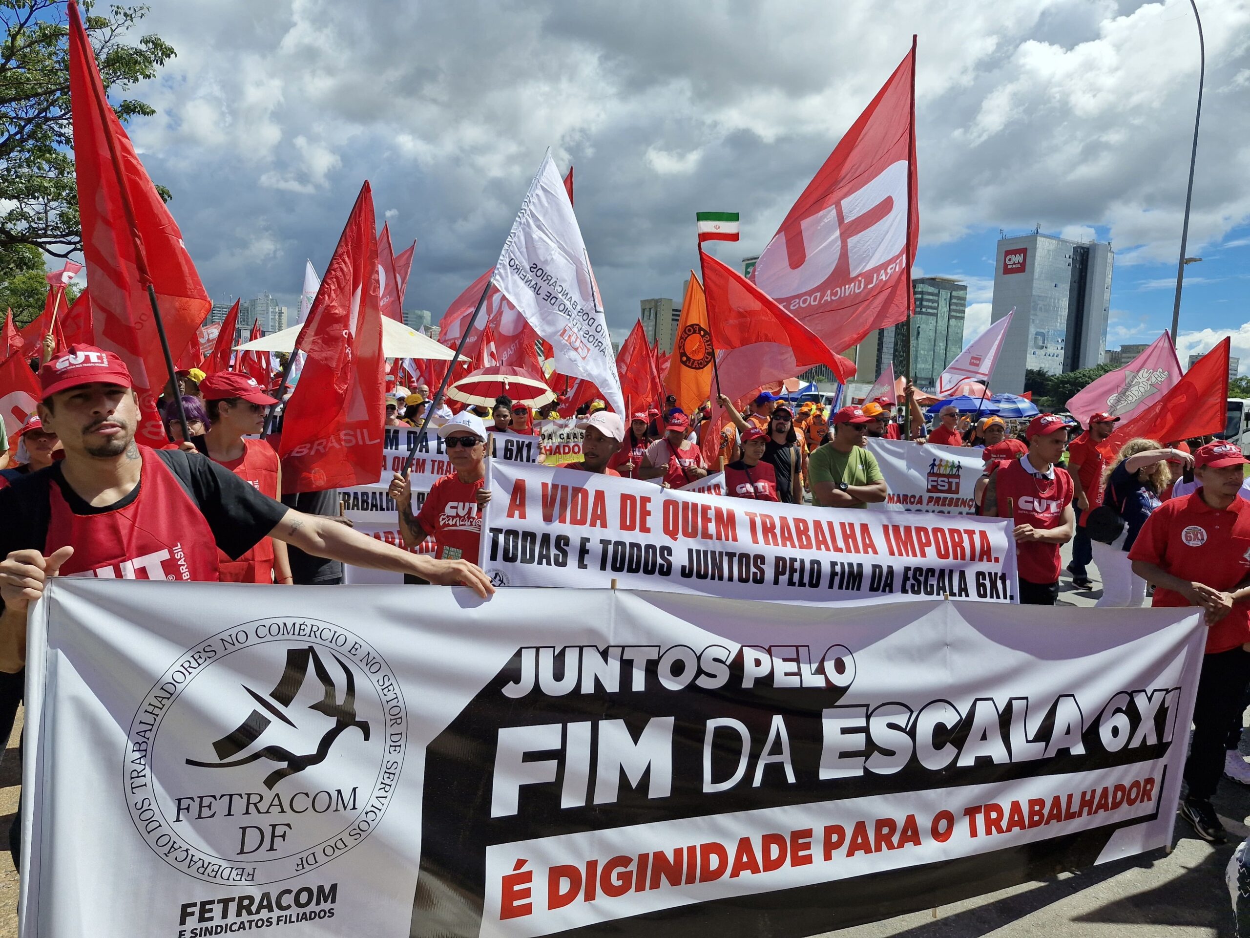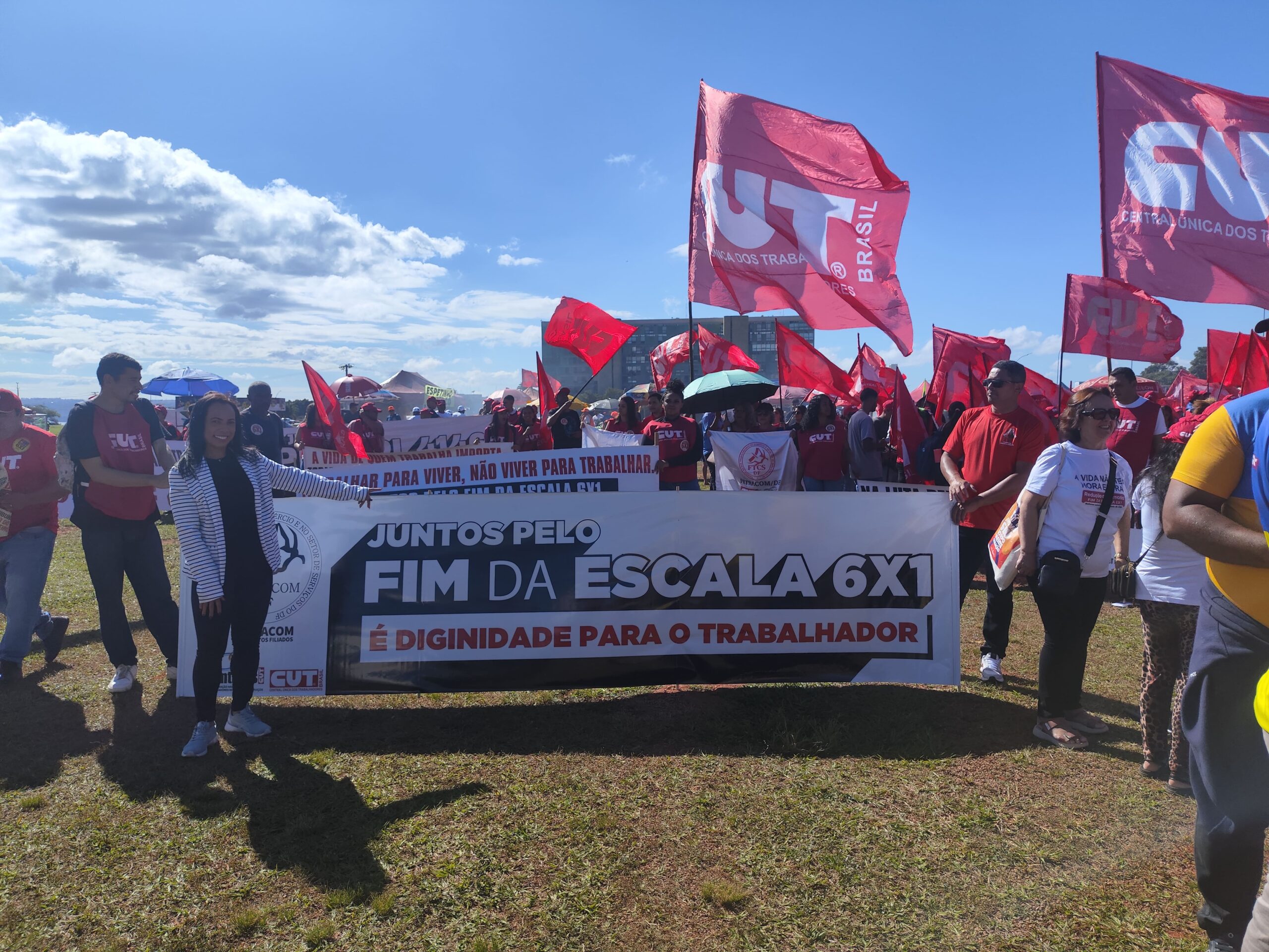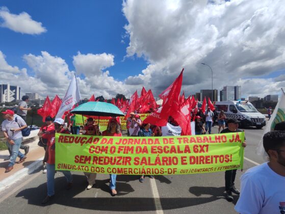 Com bandeiras, faixas e muita disposição, trabalhadoras e trabalhadores do comércio e serviços do DF se somaram a milhares de manifestantes, dando visibilidade à luta pelo fim da escala 6×1, por melhores condições de trabalho e pela valorização profissional.