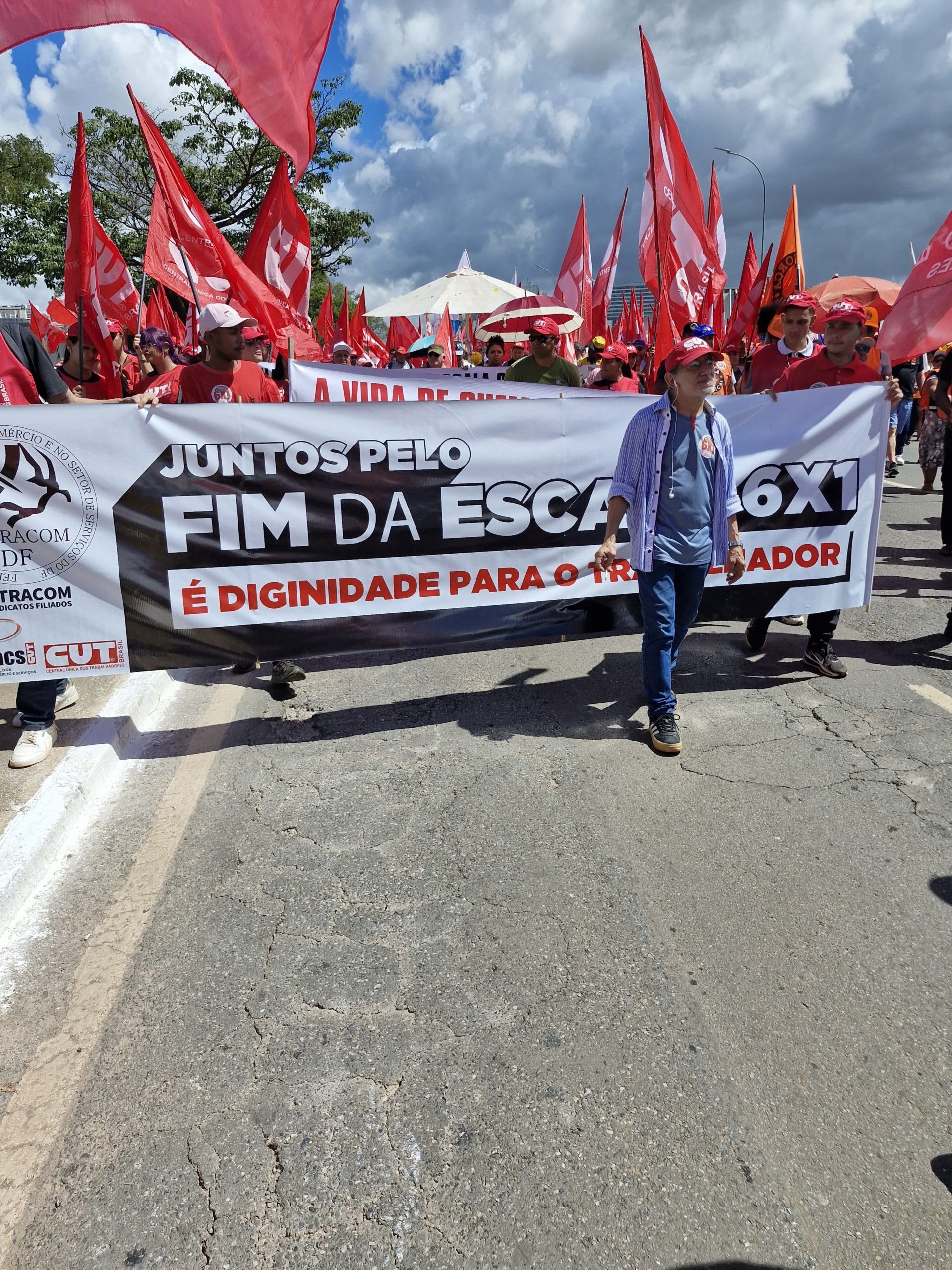 Se trabalhadores e trabalhadoras vieram dos quatro cantos da nossa federação, é claro que a classe trabalhadora do Distrito Federal compareceria em massa para engrossar ainda mais as fileiras de luta pelo fim da escala 6×1 — e a articulação na capital da República ficou por conta da Federação dos Trabalhadores no Comércio e Serviços (Fetracom-DF).
